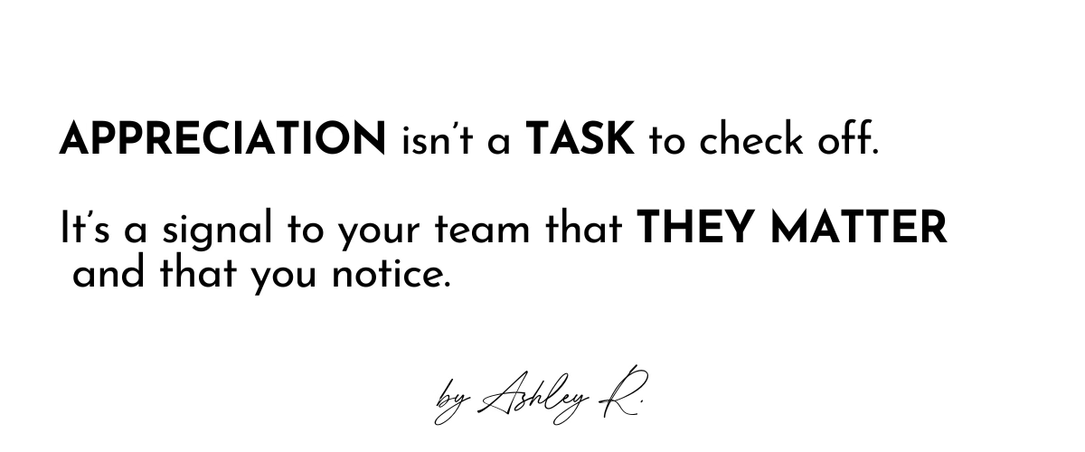 Many of you are likely already trying to think about the best ways to show your appreciation for your team’s hard work (or your boss’s mentorship) this year. If you haven’t thought about it yet - here’s your reminder. As a leader, I know you work hard to ensure that your teams feel appreciated every day. You do that by being present in 1:1s, being a thought partner and sounding board, celebrating their wins, and advocating for them whether they’re in the room or not. You’re not just leaders, you’re champions. On the flip side, when that isn’t happening - we know that employees often cite feeling unappreciated (or under appreciated) as their major motivation for leaving jobs. If you’re not sure how to make your team members feel appreciated, read up on the Workplace Appreciation Languages (by the creator of the 5 love languages).